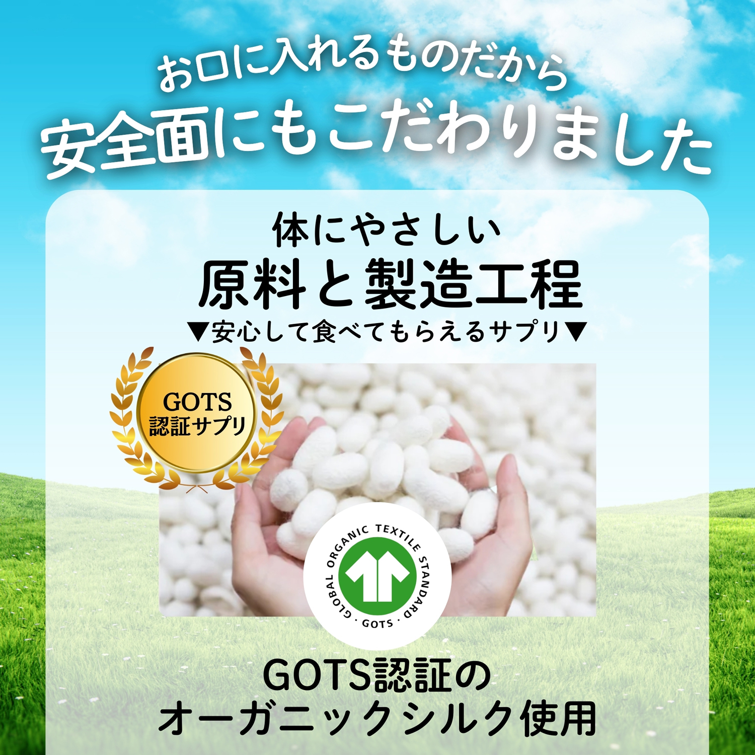 「SILCAT」の主成分は、独自の特許技術で抽出された「カラダシルクR(シルクフィブロイン)」です。